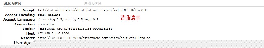 上面两张图片是用火狐的Firebug截取的,前者是普通的HTTP请求头信息;后者为Ajax请求的请求头信息。注意第一图片被红框圈起来的部分,这就是Ajax请求与普通请求不同的地方,AJAX请求头中带有X-Requested-With信息,其值为XMLHttpRequest,这正是我们可以利用的地方。