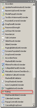 4. 添加好控件后,在工具箱中就可以像标准的ASP.NET控件一样使用Rating控件了。