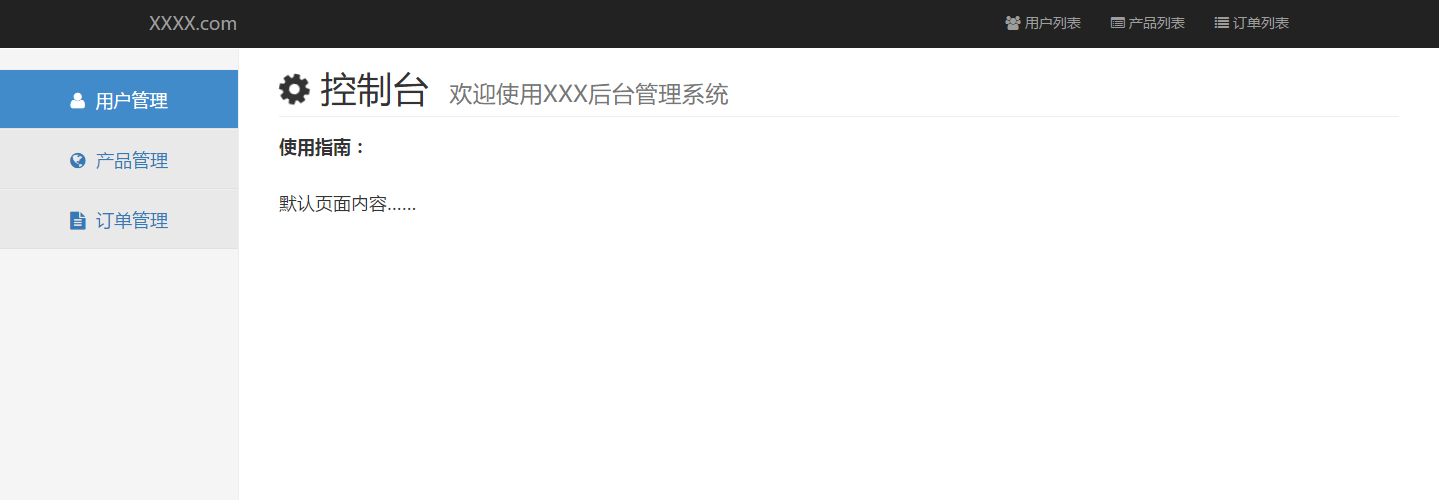 <h1 class="page-header"><i class="fa fa-cog fa-spin"></i> 控制台<small> 欢迎使用XXX后台管理系统</small></h1>