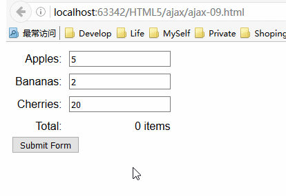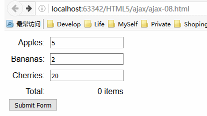 这个响应很简单,实现效果是让服务器计算出了用户通过form中各个input元素所订购的水果总数。服务器得端脚本的其余部分负责解码客户端用Ajax发送的各种可能数据格式。
