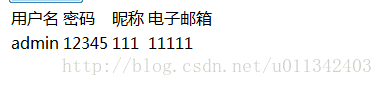 var html = "<table><tr><td>用户名</td><td>密码</td><td>昵称</td><td>电子邮箱</td></tr>";