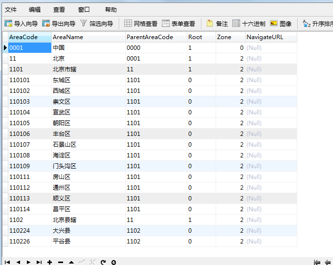 北京的代号为11,那么子代号为11的便是北京时的市区,