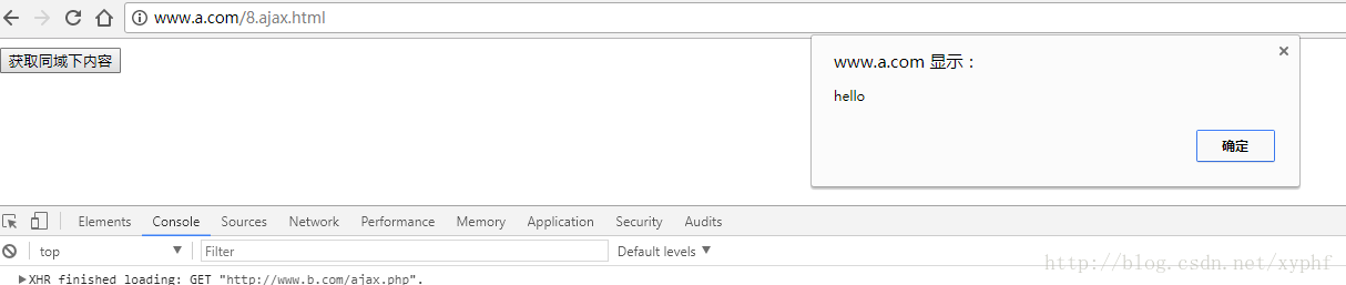 这时候我们在打开当前页面 http://www.a.com/7.ajax.html ,点击按钮我们发现请求到了数据;