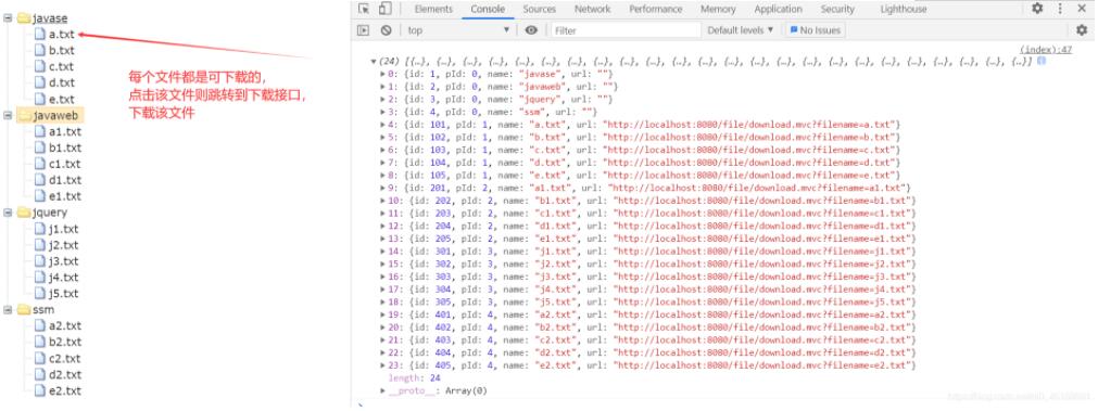 4、前端渲染出来的每个文件都包含一个该文件对应的下载url,点击该文件跳转到该文件的下载接口