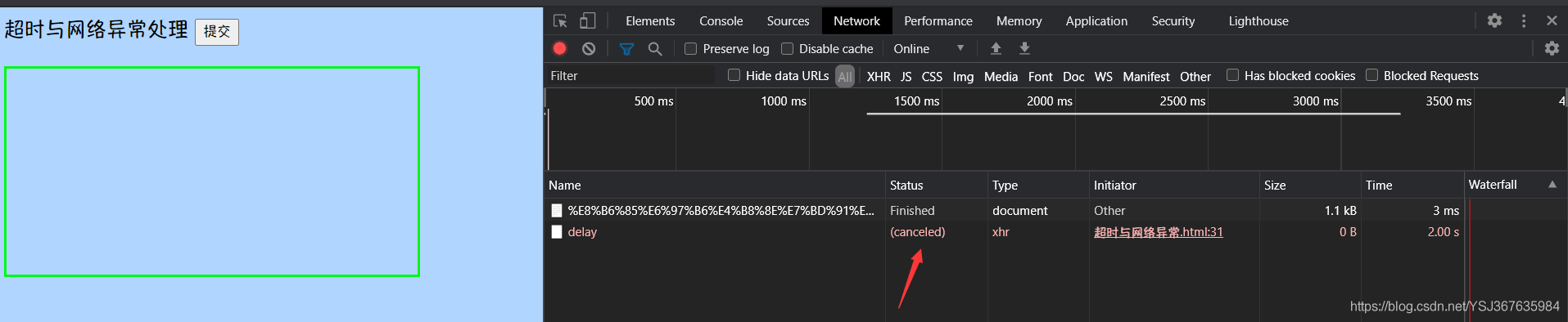 那么现在呢,我们需要为请求加上一个限制时间,超过这个限制时间,浏览器就会认为此时请求超时了。如下加上