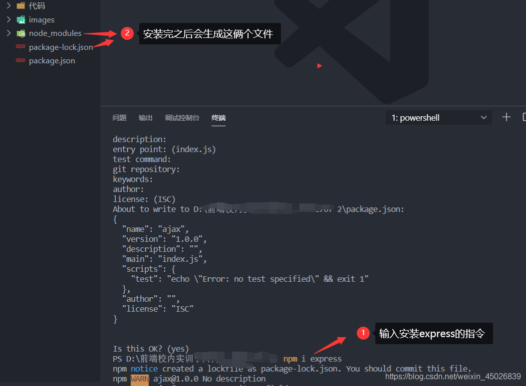 使用 vscode安装express (前提是你已经成功安装了node.js)