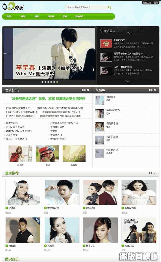 PHP仿 A8音乐分享网站源码]PHP 仿 A8 音乐分享网站源码]此套源码带会员功能,可以上传分享自己喜欢的音乐有新闻、视听、排行榜、图库等栏目,更容易 SEO 优化。整合了音乐播放器插件,能在线播放,会员还有评论功能。也能上传歌曲 MV 视频,支持在线播放。