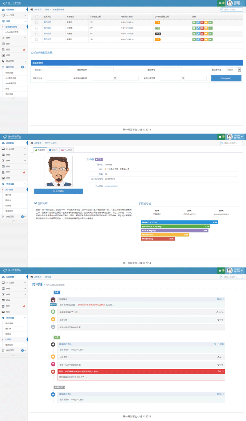简介:蓝色的航空公司后台模板,南航后台cms管理模板、UI 元素、表格、表单、插件、日历、相册、更多页面、其他页面等后台管理页面模板html