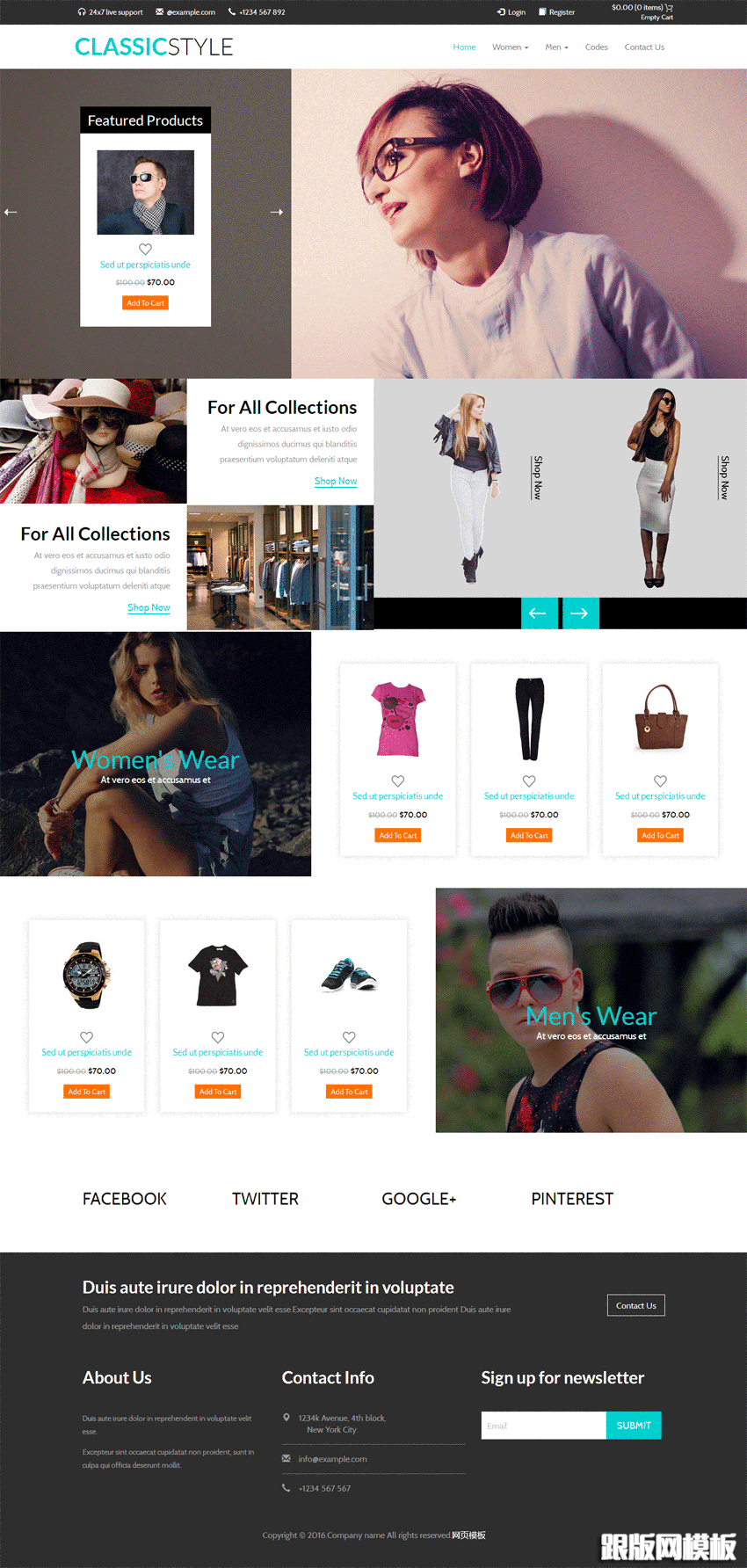 简介:英文宽屏响应式服装购物商城网站html整站静态模板