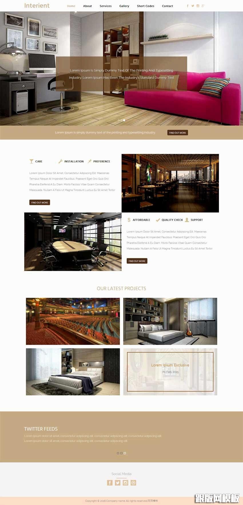 源码介绍 首页演示图片 列表页演示图片 内容页演示图片 其他页演示图片 大气宽屏的室内装修设计企业网站html模板下载说明: 大气宽屏的室内装修设计企业网站html模板下载,含多个主要模板文件,本站提供有演示页面,有需要的朋友可以下载使用。更多大气宽屏的室内装修设计企业网站html模板下载可在本站搜索,此模板为单纯的网页模板文件,非织梦模板,请希知。如果需要套用织梦模板的话本站也提供此项业务,具体细节可联系本站客服。 装修公司 装修设计 企业 html模板