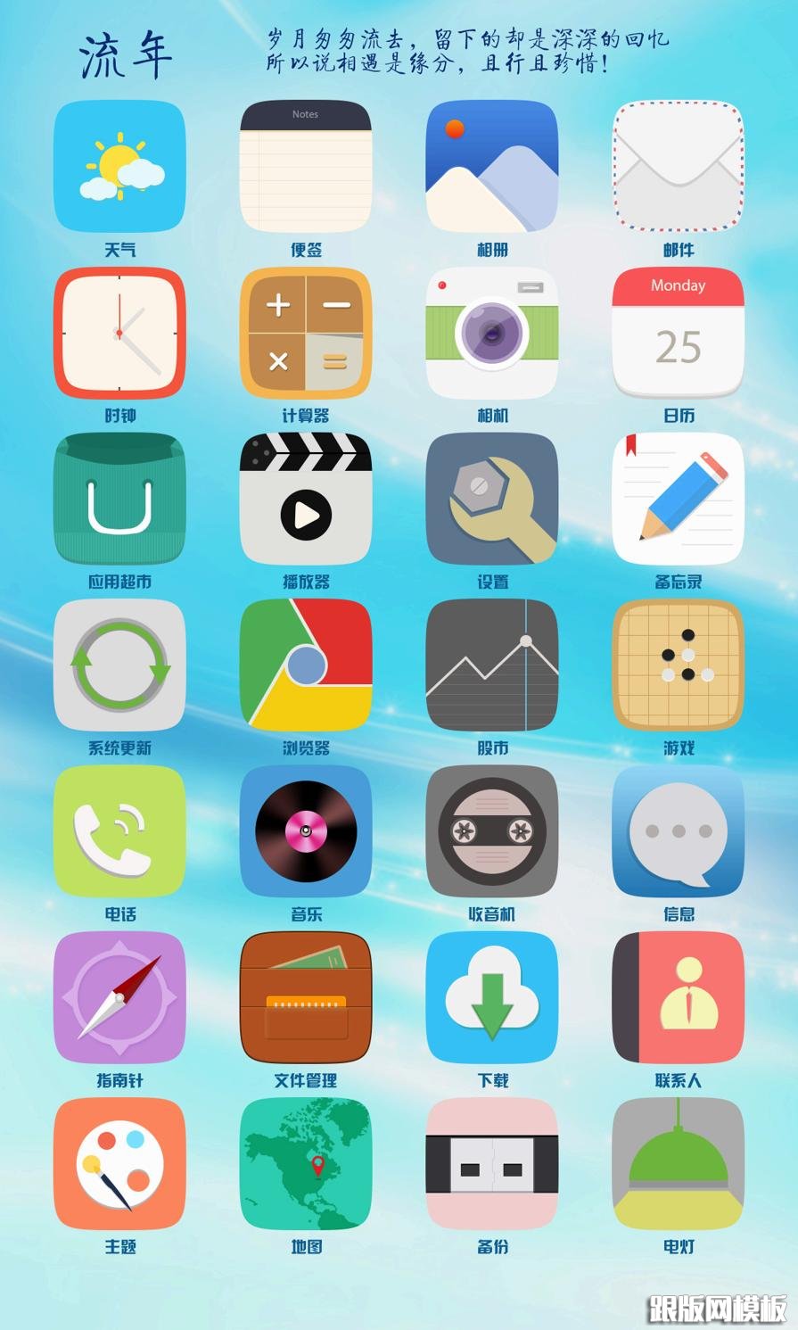 扁平风格的手机桌面app设计图标PSD素材