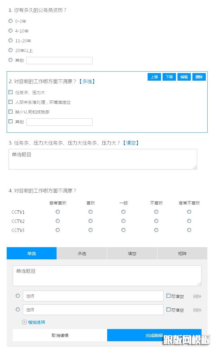 jQuery自定义修改问卷调查表单代码