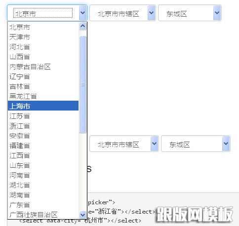 jQuery中国省市区城市选择三级联动插件
