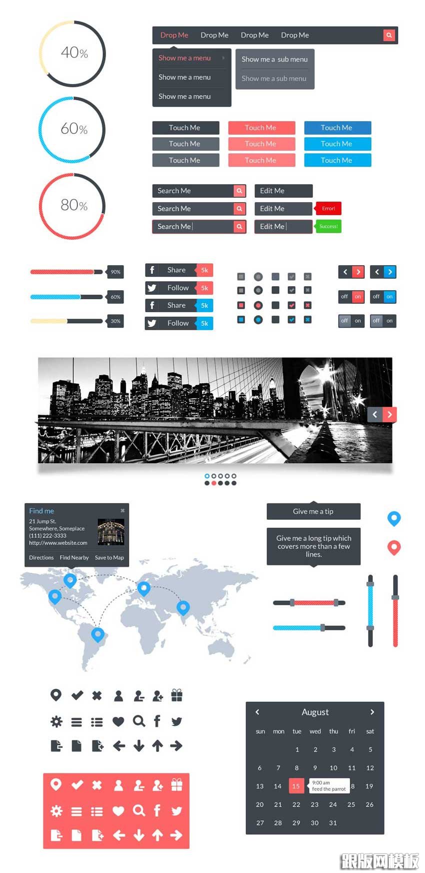 各类扁平的按钮加载下拉图标进度条UI素材