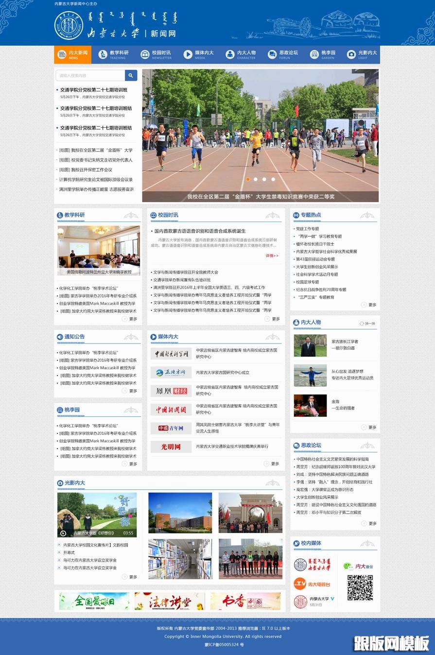 蓝色的内蒙古大学学校新闻PSD网站设计模板