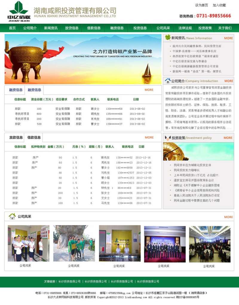 绿色网页投资管理公司首页psd分层网站模板下载