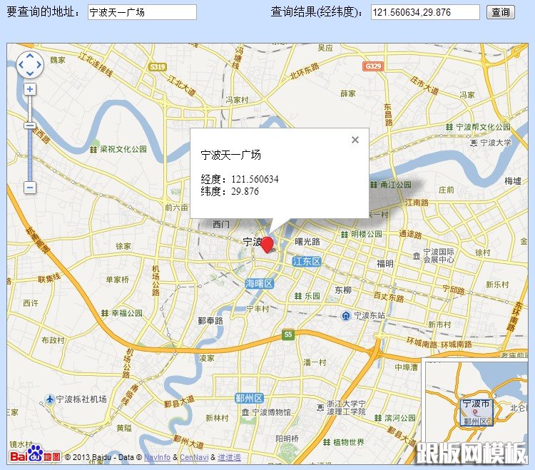 要查询的地址:<input id="text_" type="text" value="宁波天一广场" style="margin-right:100px;"/>