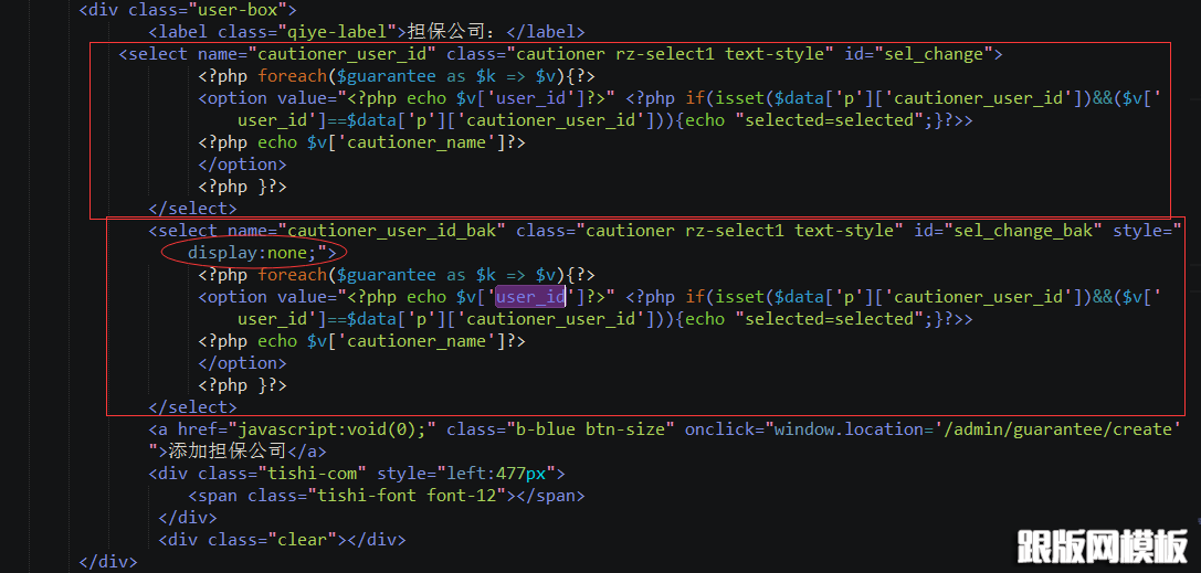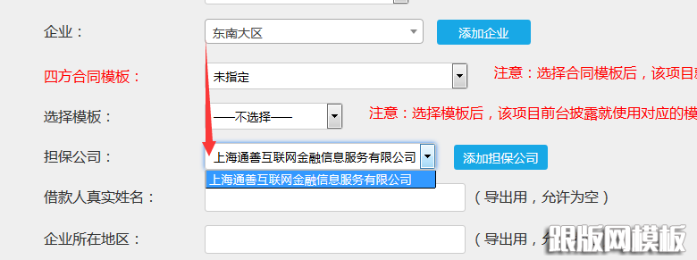 相互关联,如果有担保公司则下拉框只显示一个担保公司,其他不显示,若没有,全部显示,让管理员选择。