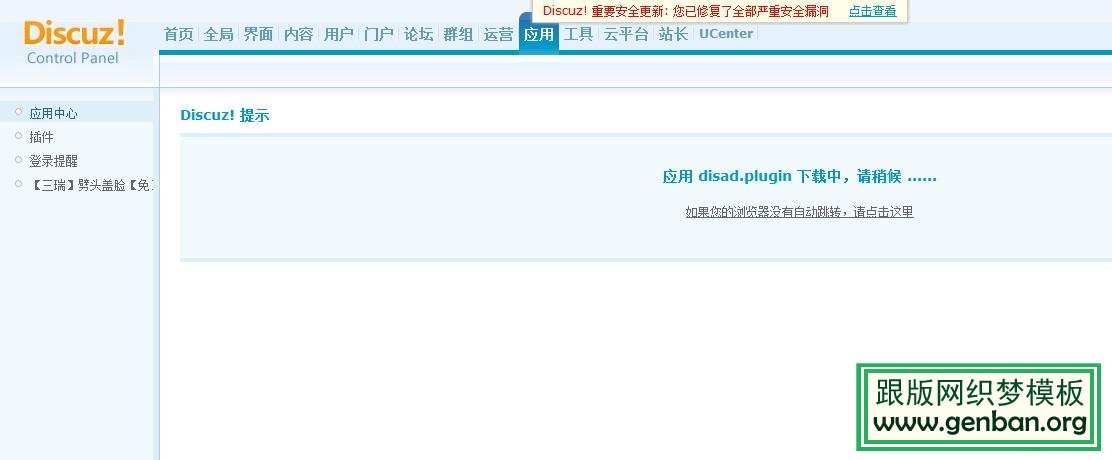 站长在点击“安装”按钮后,Discuz! 应用中心会自动启动安装进程,下载、安装等整个操作过程几乎无须干涉,非常便捷。