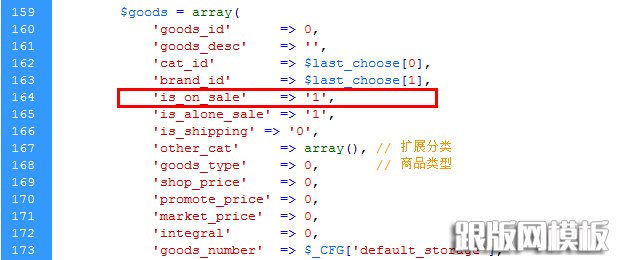 使用文本编辑器,打开admin/goods.php,找到约第164行的(找不到也可以搜索)