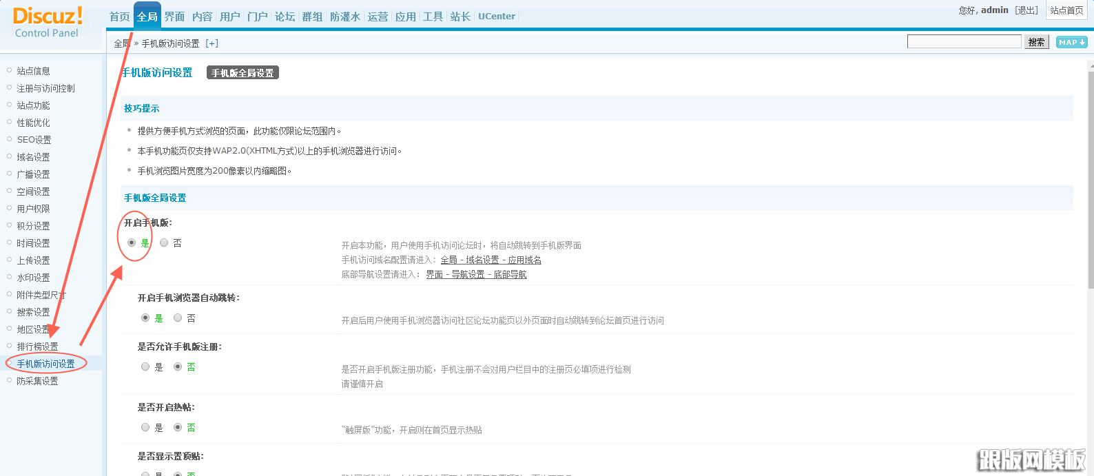 3、安装mip模板,先备份手机版模板文件template\default\touch目录,复制新模板至该目录。见压缩包中附件template\default\touch