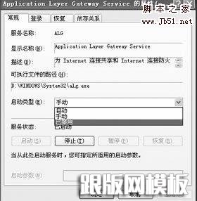 选择需要禁止的服务,在其上点鼠标右键,选择“属性”,打开服务设置窗口,其中“启动类型”中提供了三种启动方式,即自动、手动和已禁用(如图2),三种启动方式所产生的效果是不一样的。