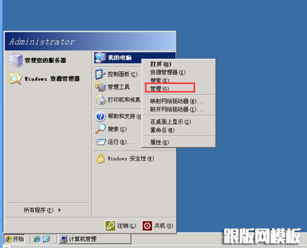 单击 开始 > 我的电脑,右键点击,选择 管理。