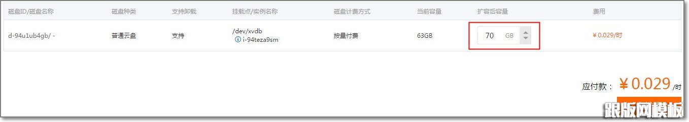 进入扩容页后,填写扩容后的磁盘容量大小,单击去扩容。