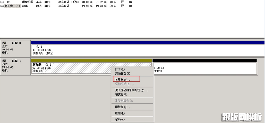 Windows 2003 版本跟之后的 Windows 版本扩容操作有些不同。