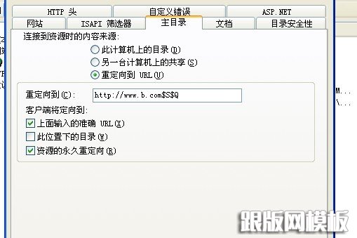 实现网站的整体301跳转,设置 iis站点属性》主目录》重定向到URl 写入http://www.newdomain.com$S$Q
