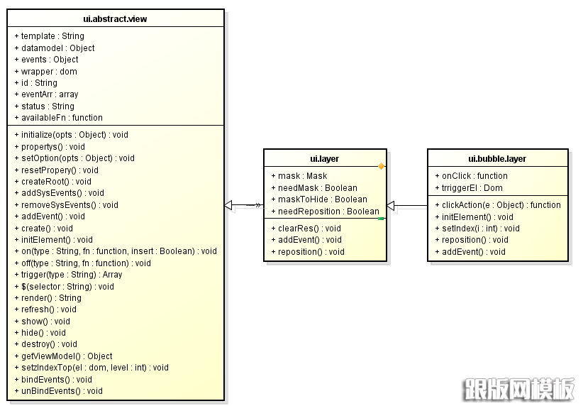 这个也可以是我们整个弹出层类的基本结构,我们可以在此上做很多扩展,但是这里我们不扯太多,单就气泡组件做论述