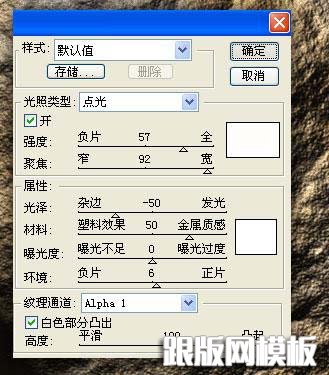 6、选择背景副本(打开背景副本层左边的小眼睛),同样使用光照效果滤镜(改变光泽为-50%,其它参数不变)