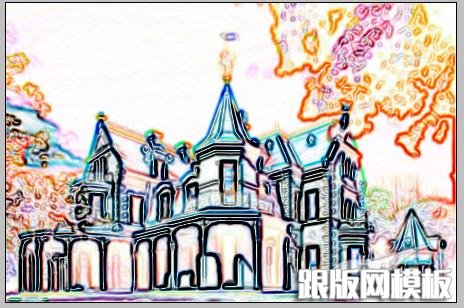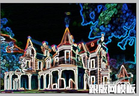 本教程制作一种类似霓虹灯效果的教程。思路:先把照片模糊处理,然后选择滤镜中的查找边缘把图片的轮廓找出来,再反相调下颜色,五彩的效果就出来了!