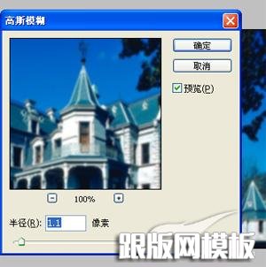1、执行“滤镜”(Filter)|“模糊”(Blur)|“高斯模糊”(Gaussian Blur),在弹出来的对话框中设置“半径”(Radius)为“1”,如图1所示: