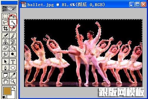 将刚才拷贝的内容粘贴过来,并用魔术棒选中该区域,如下;