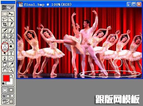将幕布图层放在下面,并用模糊工具修饰边缘,增加真实感。