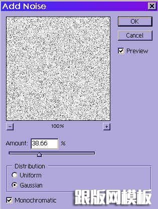 5.然后新建一个碗口钢纹图层,填充白色,用Filter(滤镜)-->Noise(杂点)-->Add Noise(添加杂点),按下图设置好。