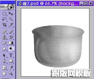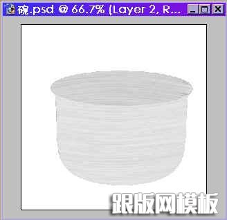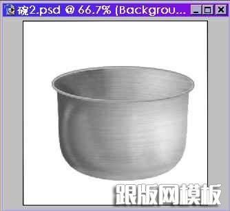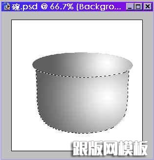 13.再按住Ctrl键,点击碗壁钢纹图层,使碗壁浮动如图12,在打光图层里用圆形渐变工具拉出以下效果,这样就可以看到一个如图13有立体感效果的碗了。
