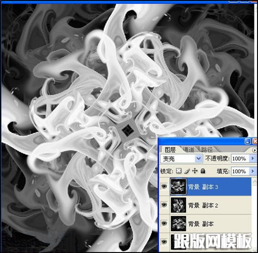 4、按“Ctrl+Alt+Shift+T”键执行连续变换并复制操作2次,得到背景副本2和背景副本3,效果如图所示: