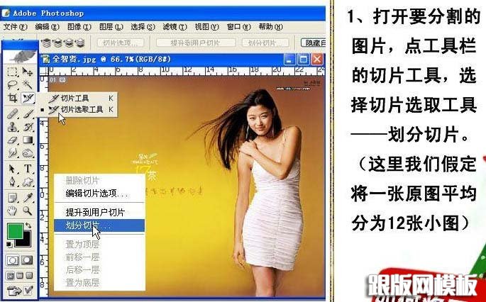 我们在制作网站的时候如何把做好的效果图转成网页格式呢?这里就有很多方法,如果是比较复杂的网页就需要用手动来切图。如果不是很复杂的可以直接用PS自带的切片工具来切割。教程中介绍的是规则切图,实际应用中需要用手动来划分区块的大小。