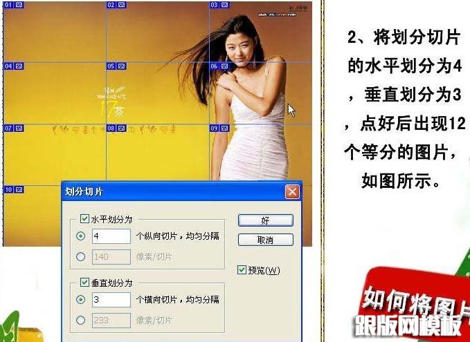 2、将划分切片的水平划分为4,垂直划分为3,点好后出现12个等分的图片。