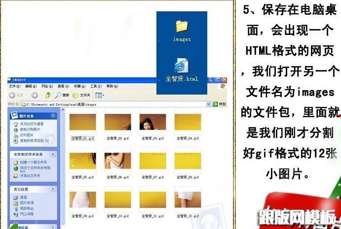 5、保存在电脑桌面或其它文件夹,会出现一个HTML格式的网页,我们打开另一个文件名为Images的文件包,里面就是我们刚才分割好的小图片。