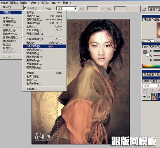3、如果你想在特定的色谱宽度内对画面的颜色进行调节,推荐你使用“匹配颜色”命令。