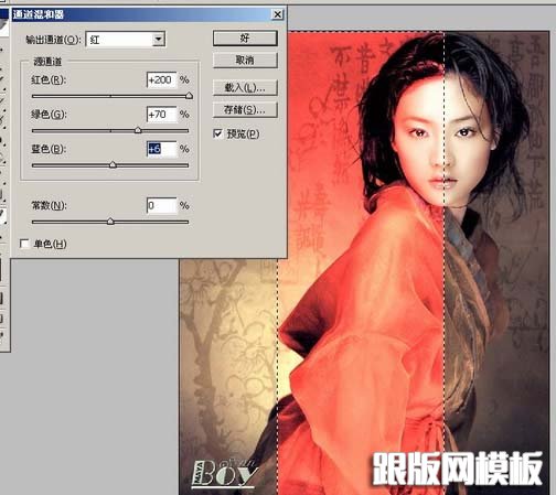 6、“通道混合器”则是基于RGB理论模型的调色工具。