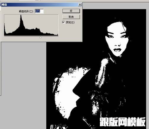 11、“阀值”在纯无色的状态下,控制黑白显示范围的工具,与其他滤镜配合使用。