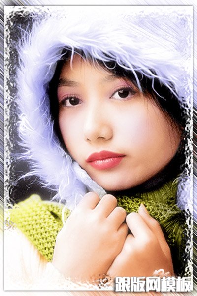 6.新建一个图层,用画笔工具,设置前景颜色为桃红,透明度为5%到10%,在脸上涂上粉红色,注意报纸自然