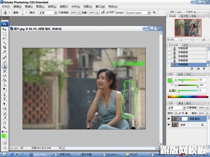 6、把背景压暗一点,选取人物主体,选择——羽化,羽化半径为:50像素,选取反相,CTRl+J,得到新图层。