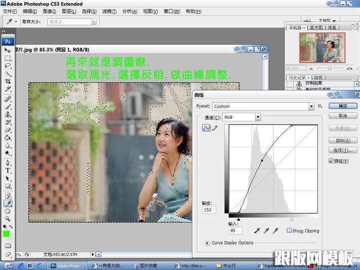 3、再来就是调整图层,选择高光区,选择反相,做曲调整。