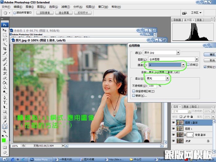 4、把图像的模式改为:Lab模式,应用图像,如下图的设置: