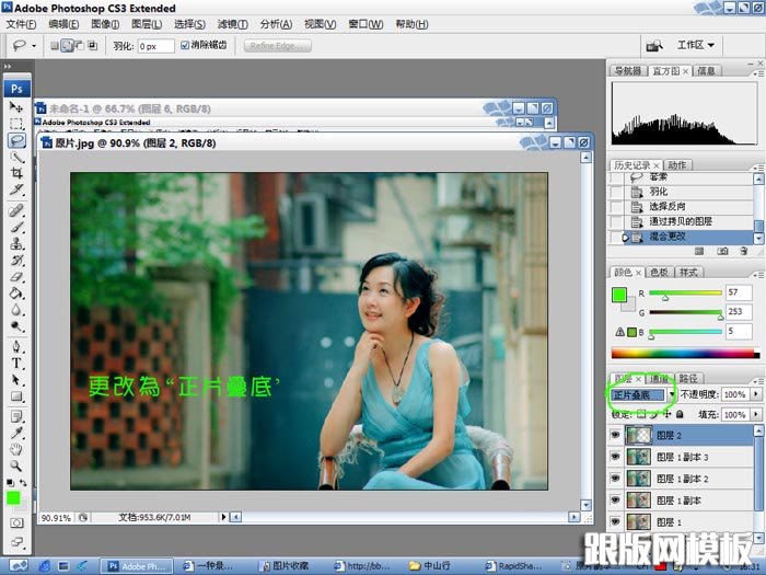 6、把图层2的混合模式改为:正片叠底。如下图: